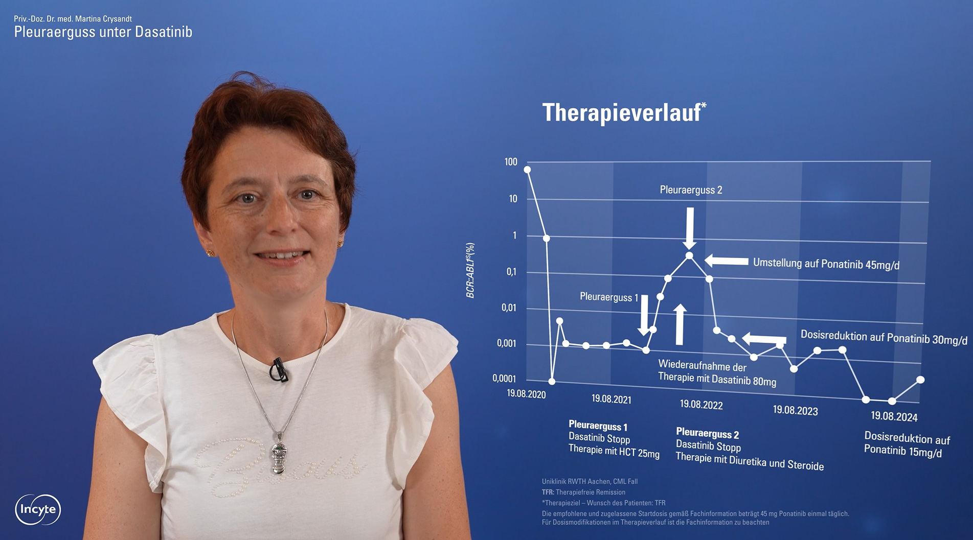 Priv.-Doz. Dr. Crysandt stellt in einem begleitenden Video einen aktuellen CML-Patientenfall aus ihrer Praxis vor. Anhand dieses Fallbeispiels werden die diagnostischen und therapeutischen Herausforderungen sowie die Bedeutung einer individualisierten Betreuung anschaulich dargestellt.